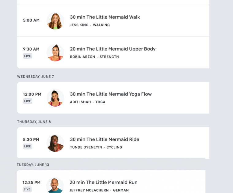 Peloton is holding a series dedicated to Disney’s The Little Mermaid movie, with 8 Peloton Little Mermaid classes both live and on-demand.