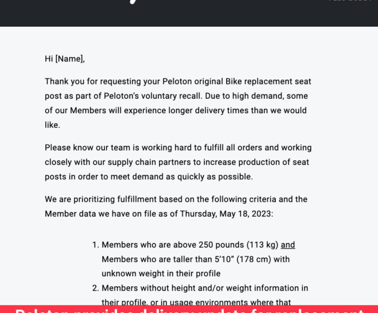 Peloton provides delivery update for replacement seat posts for original Peloton bike recall