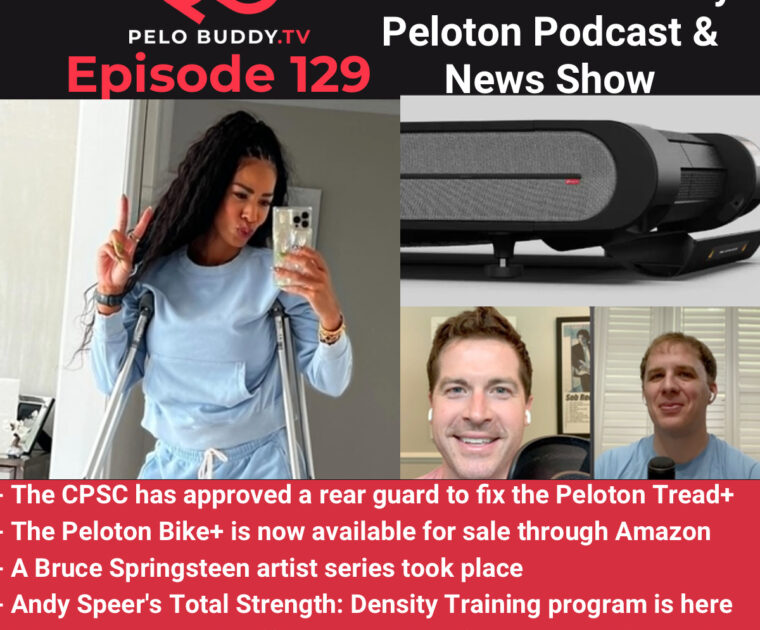 Episode 129 of Pelo Buddy TV, a Peloton podcast & Peloton news show. Top stories are the CPSC approved a rear guard to fix the Peloton Tread+, Bruce Springsteen classes, Kirsten Ferguson is off the schedule with an injury & more.