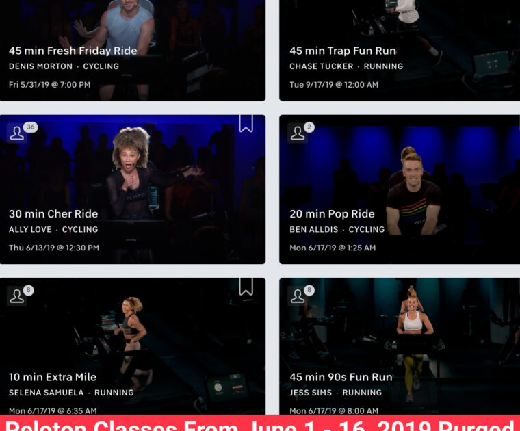 Peloton has removed two more weeks worth of classes. On May 19th, classes from June 1 – 16, 2019 were purged from the on-demand library.