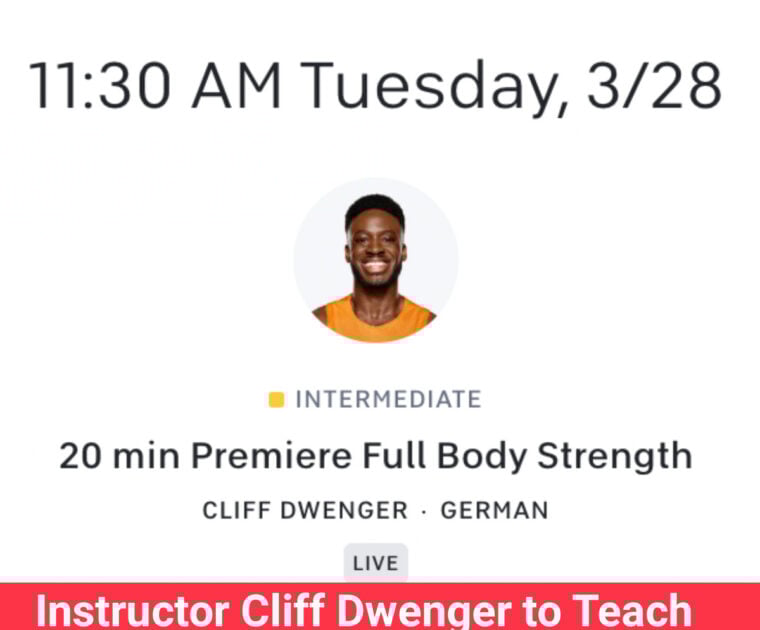 Instructor Cliff Dwenger will teach strength classes in German. His premiere Peloton strength class is on March 28, 2023.