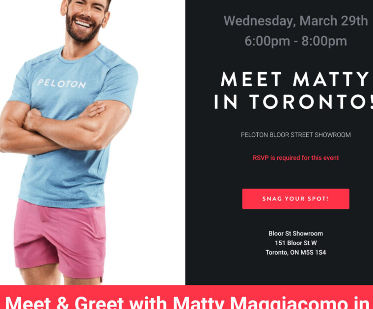 Peloton will host a meet & greet with instructor Matty Maggiacomo in Toronto on March 29, 2023.