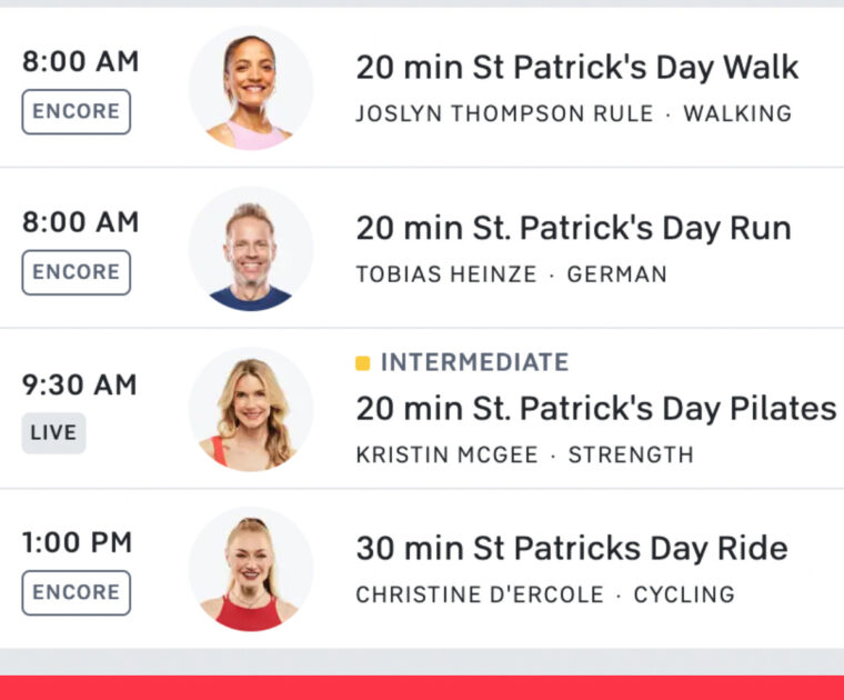 2023 Peloton St. Patrick’s Day Classes – Walk, Run, Ride, & Pilates