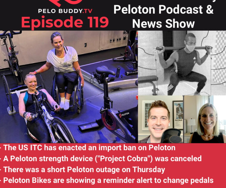 Pelo Buddy TV Episode 119 – US ITC Import Ban on Peloton, Strength Device Canceled, Peloton Outage, Reminder To Change Pedals & more Peloton news in this week’s Peloton Podcast
