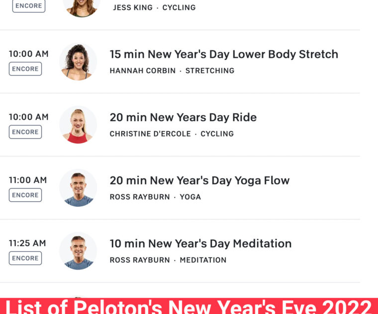 A list of Peloton’s 2022 New Year’s Eve classes, and Peloton’s 2023 New Year’s Day classes – including rides, run, yoga, strength, rowing, and more.