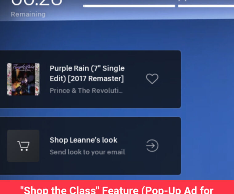“Shop the Class” Feature (Pop-Up Ad for Instructor Apparel) Rolling out on Peloton Tread