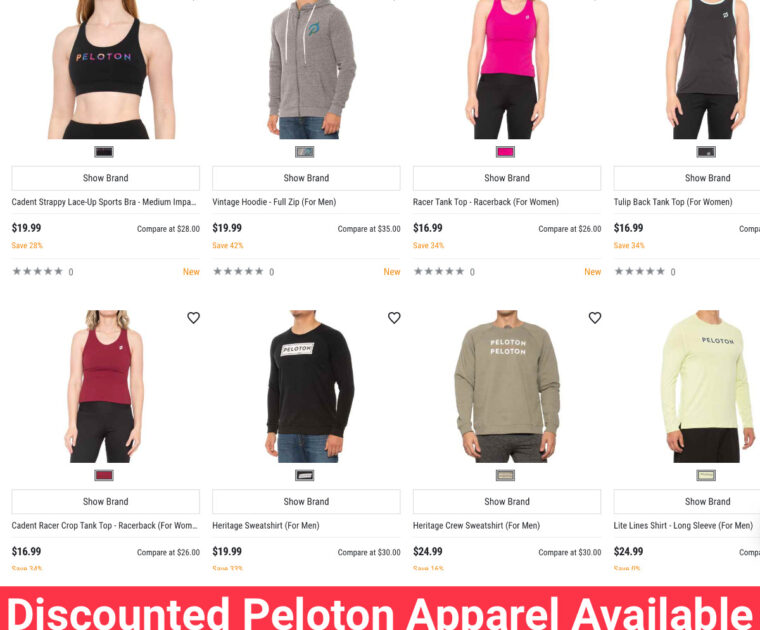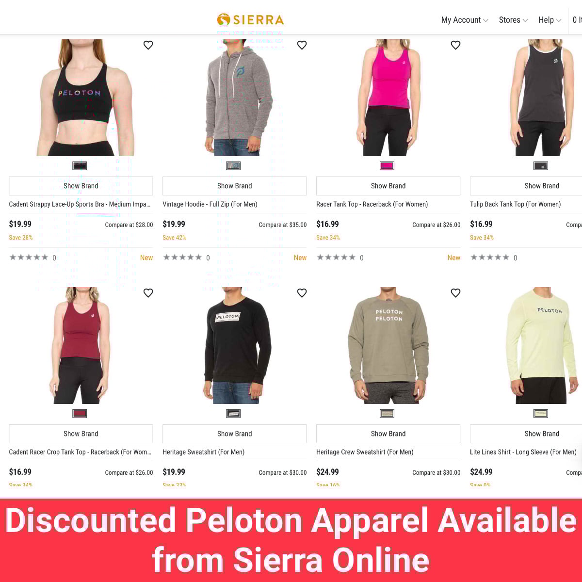 Select Peloton Apparel items are now available for deep discount on Sierra’s website.