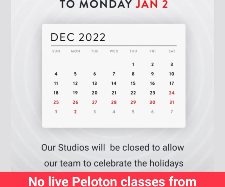 No live Peloton classes from December 24 Through January 2 (2022 Peloton Holiday Closures)