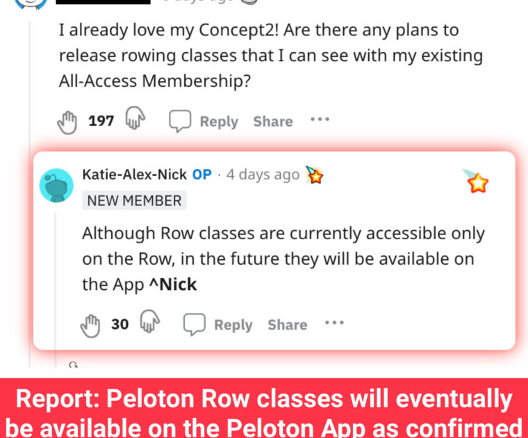 A Peloton Row Product Designer confirmed that they do plan to bring rowing classes to the Peloton app eventually in a Reddit AMA (“Ask Me Anything”).