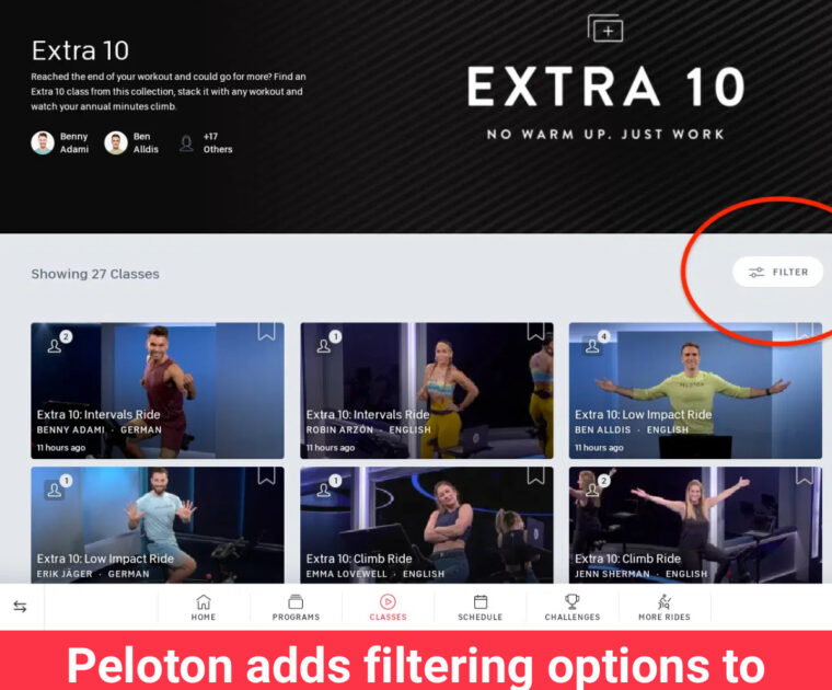 Peloton adds filtering options to Collections on Bike / Tread / Row