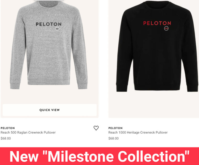 New Peloton Apparel “Milestone Collection” (500, 1000 milestone shirts & sweatshirts)