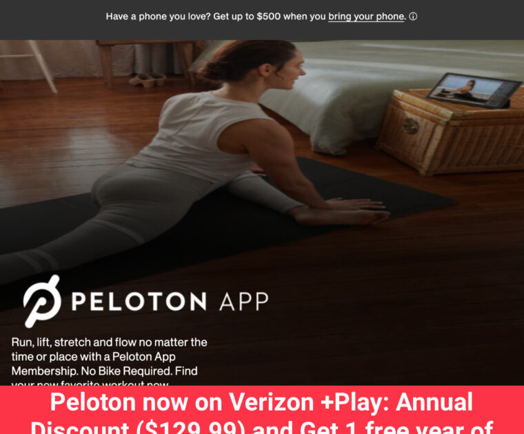 Peloton now on Verizon +Play: Annual Discount ($129.99) and Get 1 free year of Netflix by signing up for 1 year of Peloton App