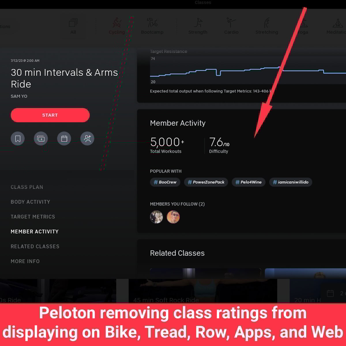 Peloton Removing “Class Rating” Display From Class Information on Bike, Tread, Row, App, and Web