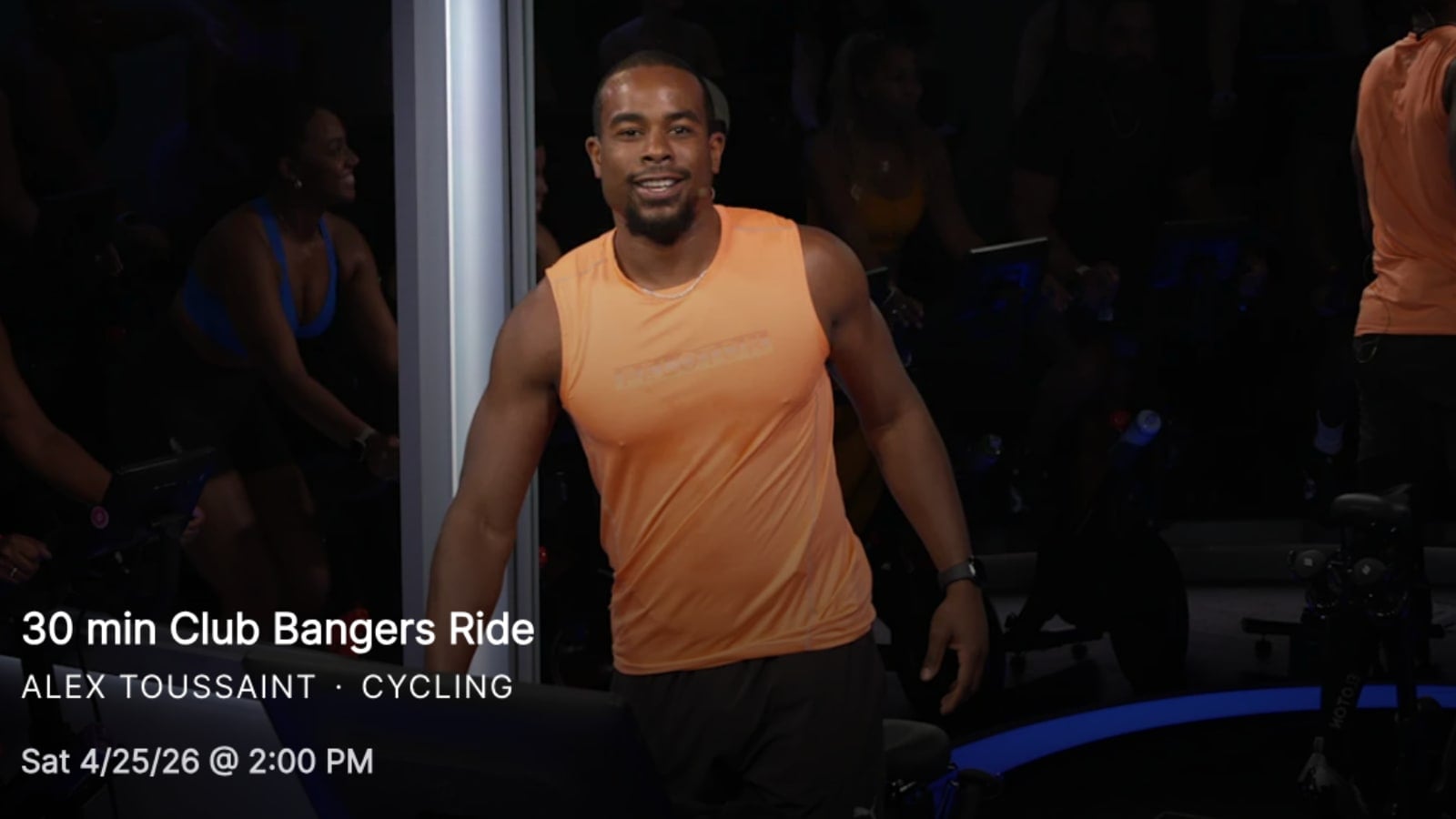 This weekend, on April 25, 2026, Alex taught a new Club Bangers ride at 2:00pm ET, with members in the studio.