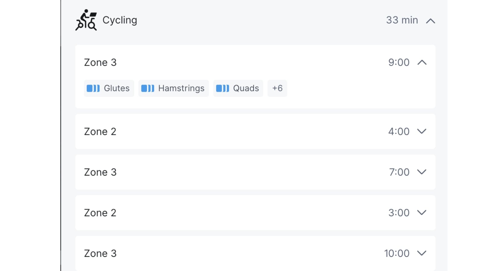 ChatGPT describes the main set of this class as having “3 endurance blocks in Zone 2 (steady effort, 80–85 cadence)”, with “Short Zone 3 surges (2–3 min each) between sets”.