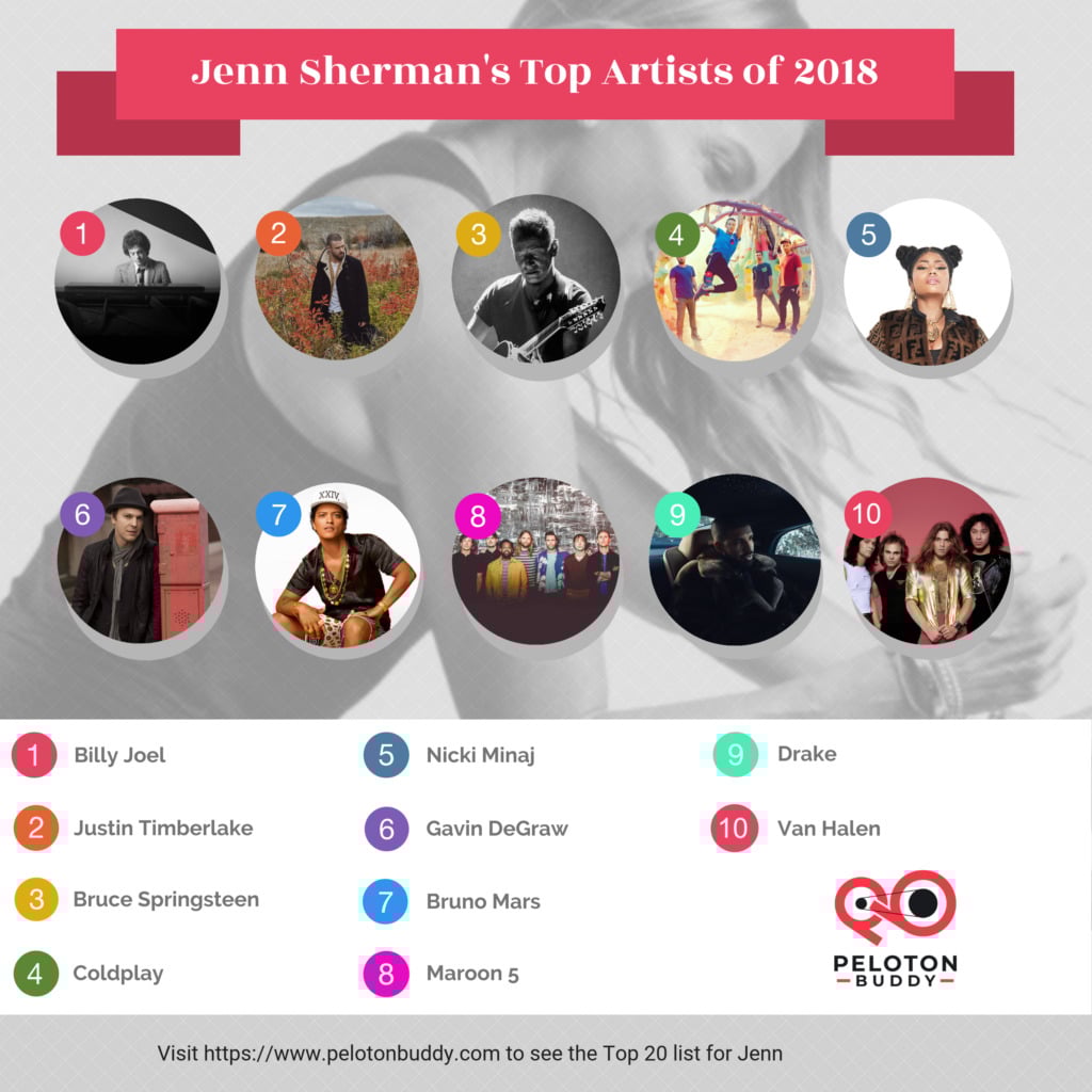 Jenn Sherman’s Top Artists & Most Frequent Workouts of 2018 on Peloton