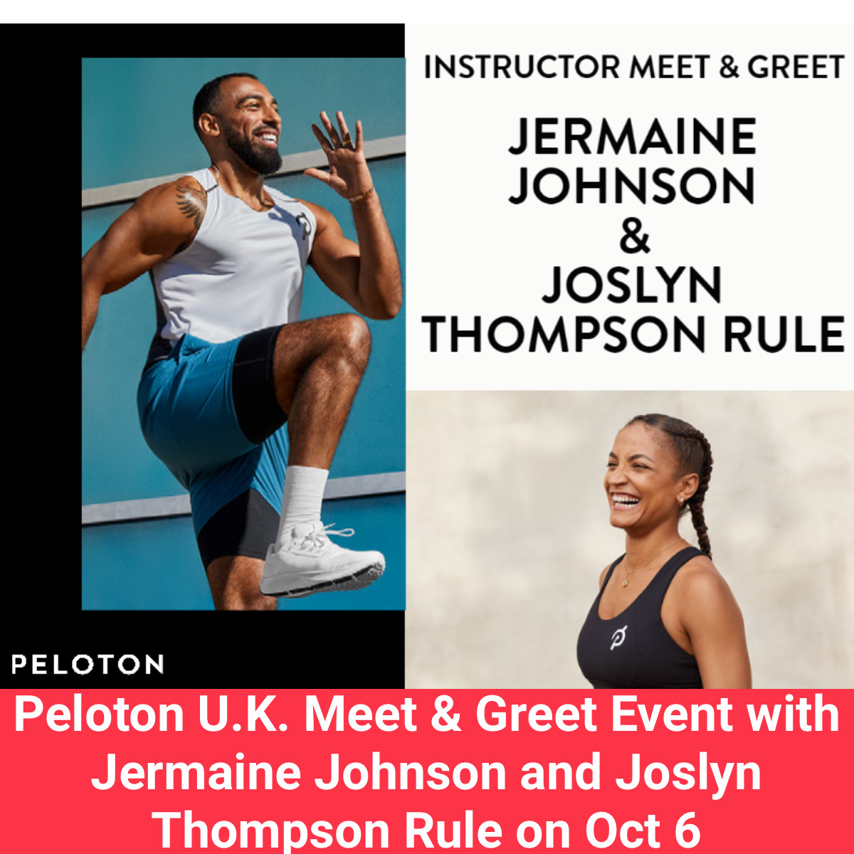 Peloton is hosting a meet and greet with instructors Jermaine Johnson and Joslyn Thompson Rule on Thursday, October 6. Peloton shared the news in the Official Peloton UK Member Group: