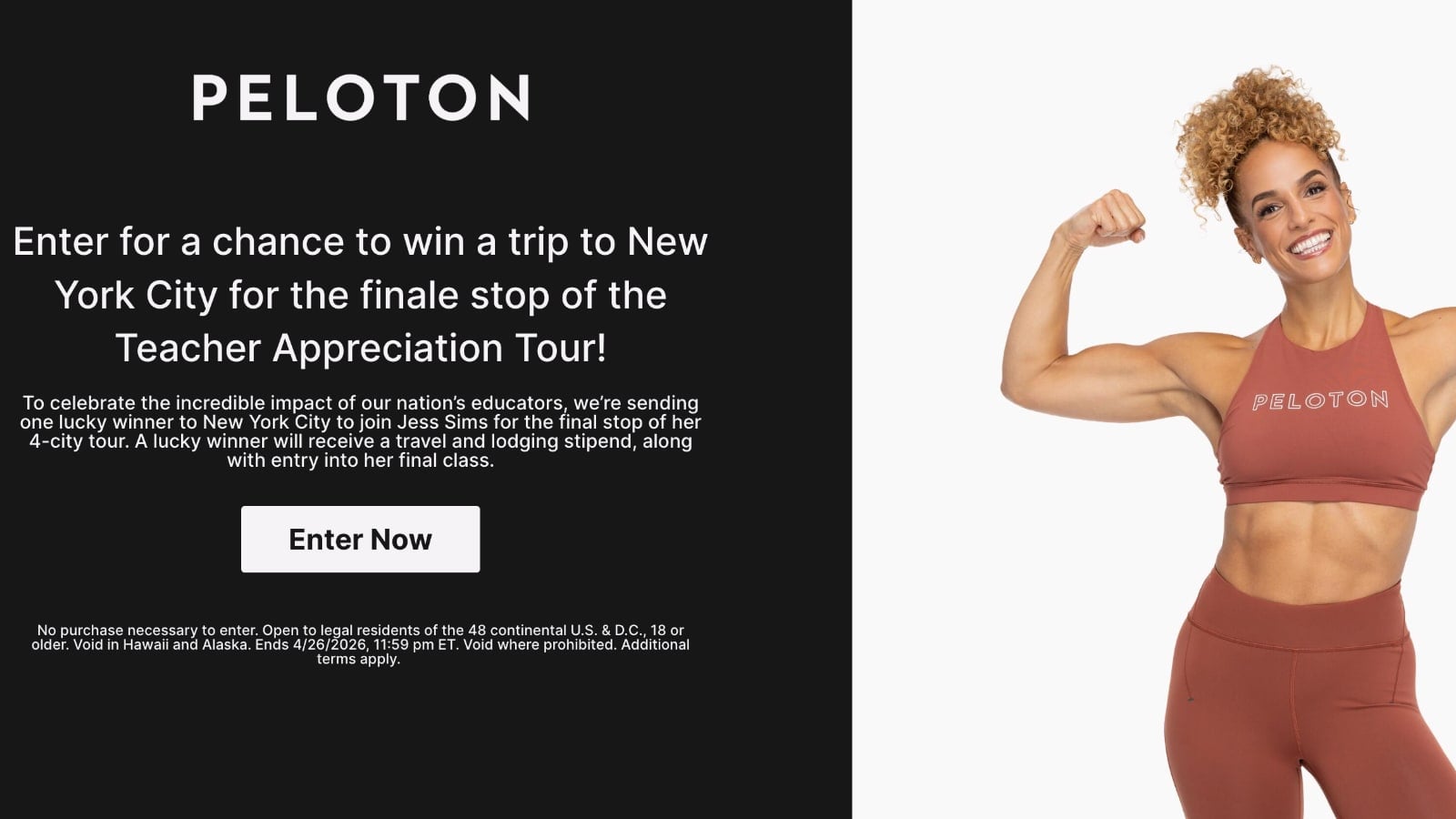 For more information on Peloton Teacher Appreciation week tour with Jess Sims, and to nominate yourself or another teacher, visit the new page on Peloton.