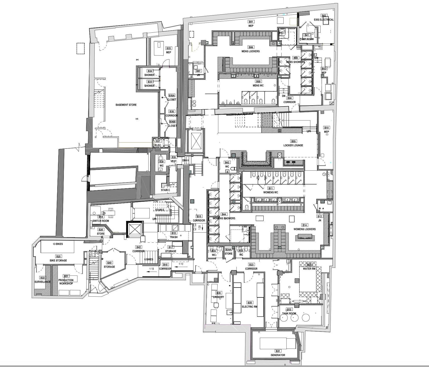 The ground floor space will principally consist [of] retail space for the sale of Peloton equipment and apparel. There will also be ancillary supporting areas, with fitting room and sanitary facilities provided. Due to reconfiguring of internal space to open up the reception lounge of 11 Floral with the retail of 12 Floral, new access to the [existing] internal stair well, which provides access from Basement to 3rd Floor, will be provided off the external access alleyway. The existing space beyond this new entry/egress point would then be converted to provide a large storage area, to support the Studio operations, for larger items such as DJ sets and studio set design pieces.