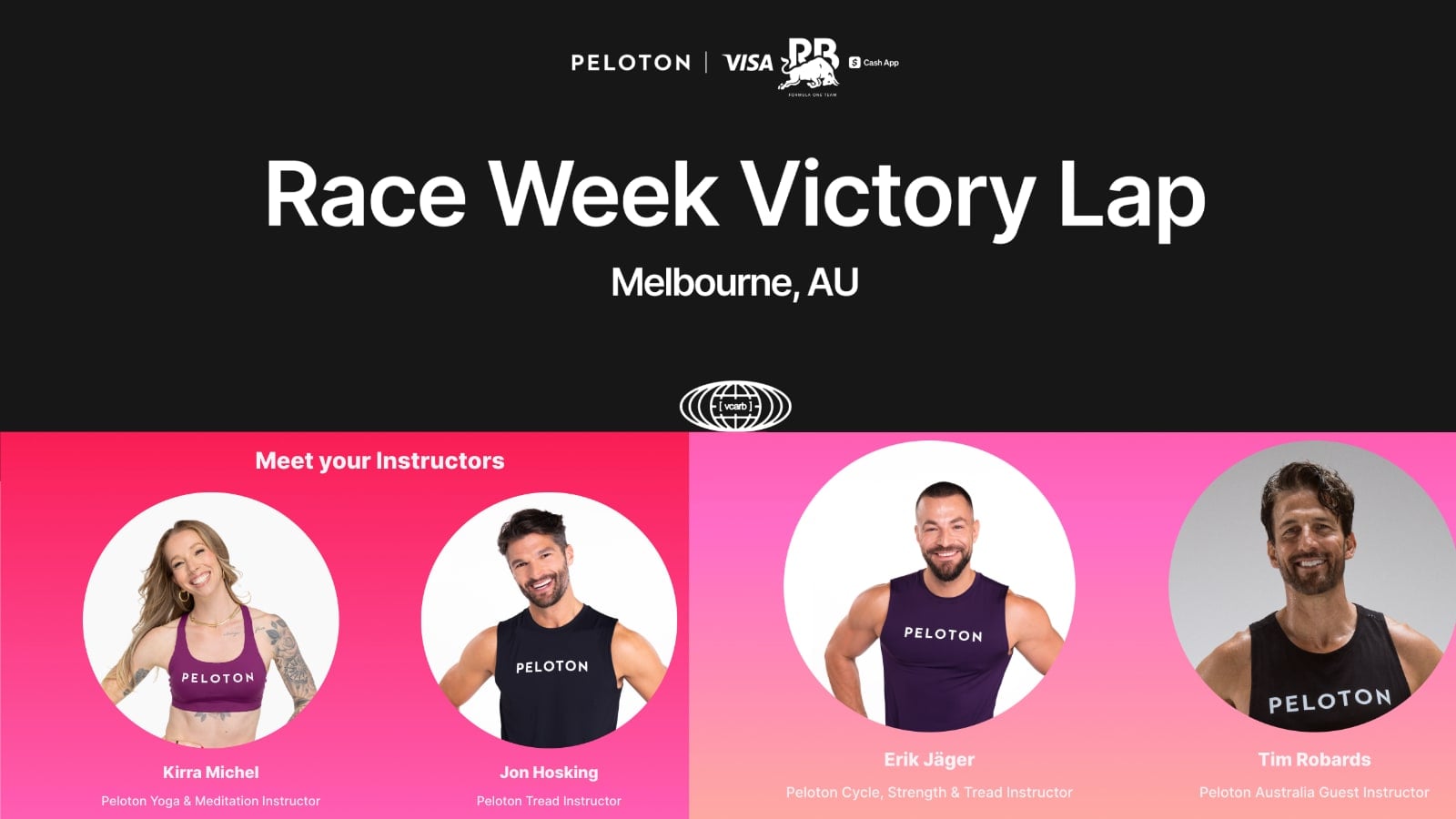 Peloton is heading to Melbourne, Australia for a free in-person event called the “Race Week Victory Lap” – held in partnership with the Visa Cash App Racing Bulls (VCARB) Formula 1 team ahead of the 2026 Australian Grand Prix.