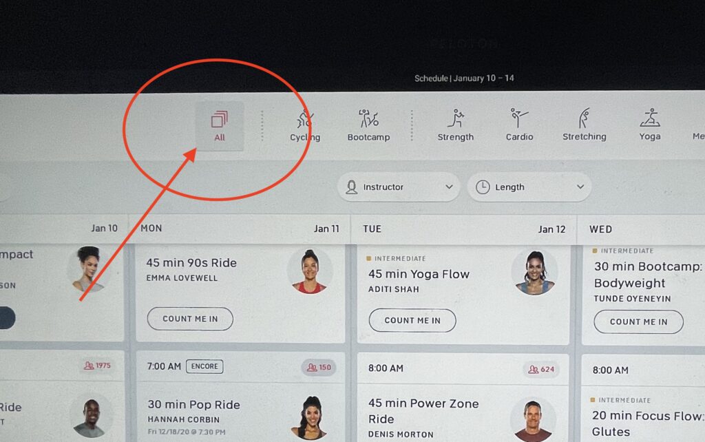 A small, but useful, addition has been made to both the Peloton Bike & Tread. There is now a new “All” filter for classes, which is available both when viewing the live upcoming class schedule, and the on-demand library. This has been added to both the Peloton Bike, and Peloton Tread.