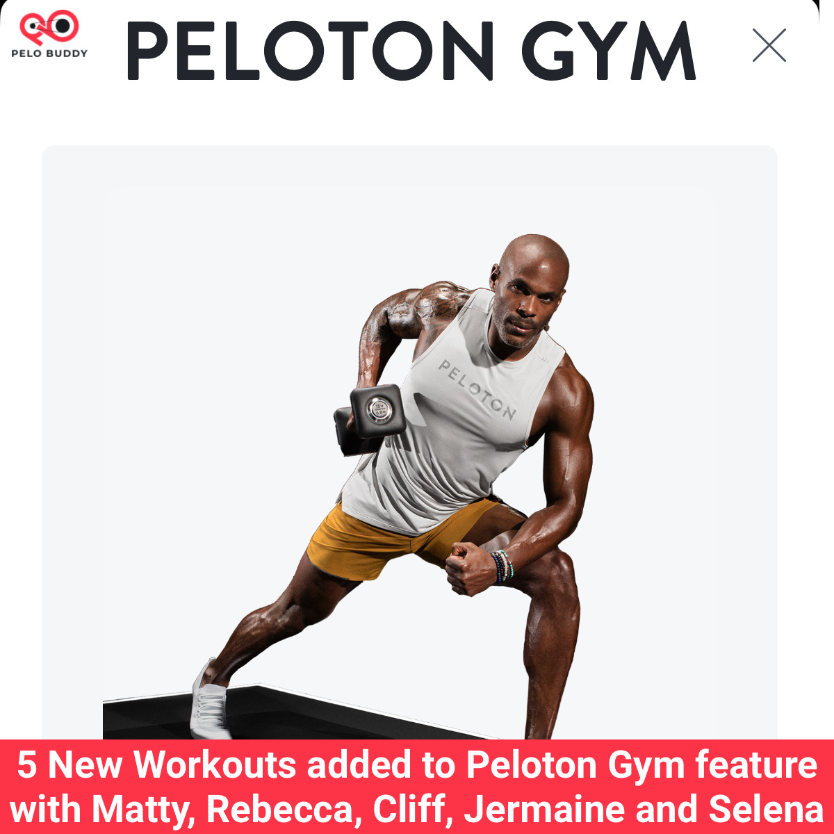 Five new workouts have been added, three of which are from instructors who did not previously have a Peloton Gym workout available: Cliff Dwenger, Rebecca Kennedy, and Selena Samuela. Additional gym workouts with Jermaine Johnson and Matty Maggiacomo were also added.