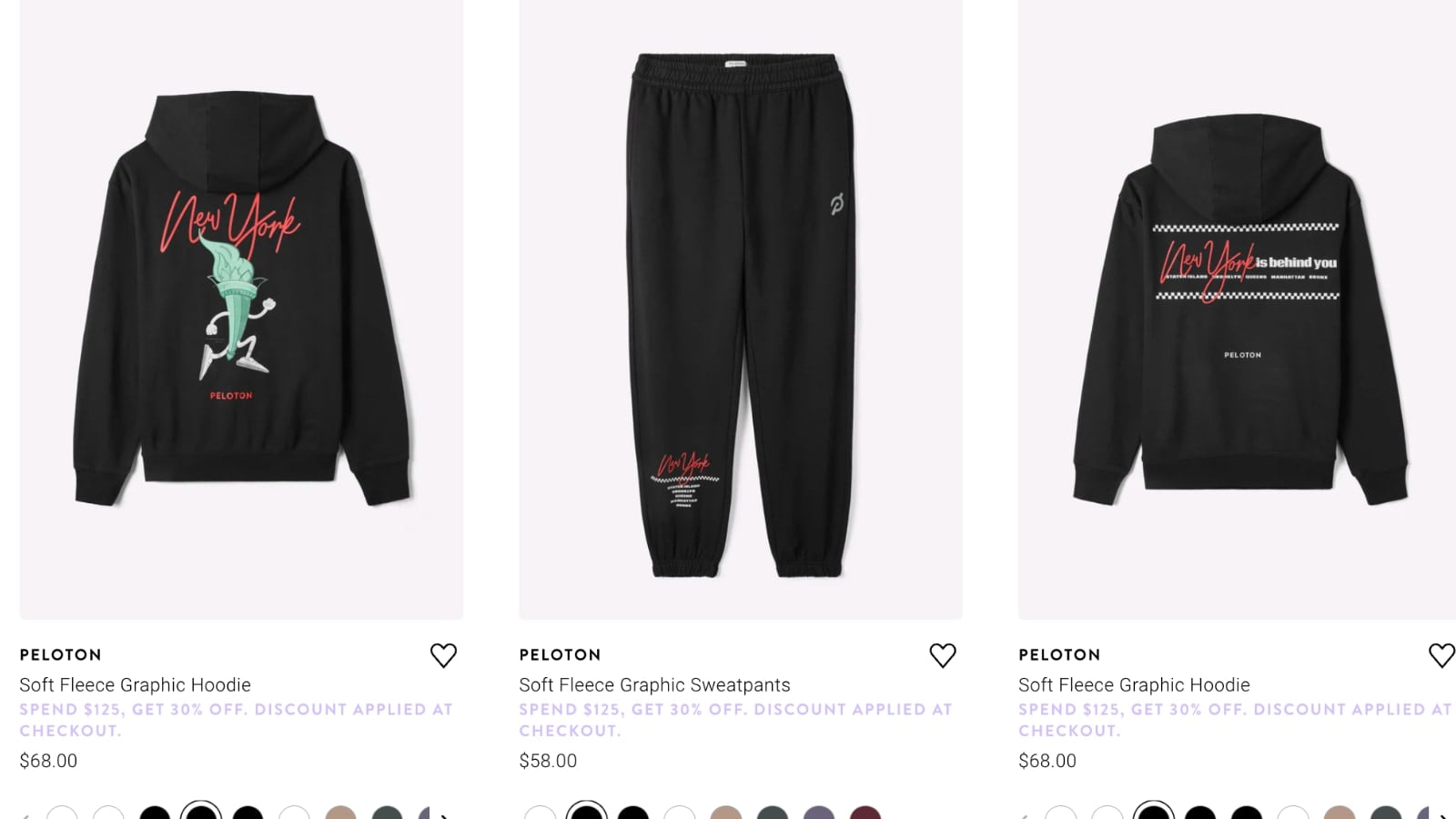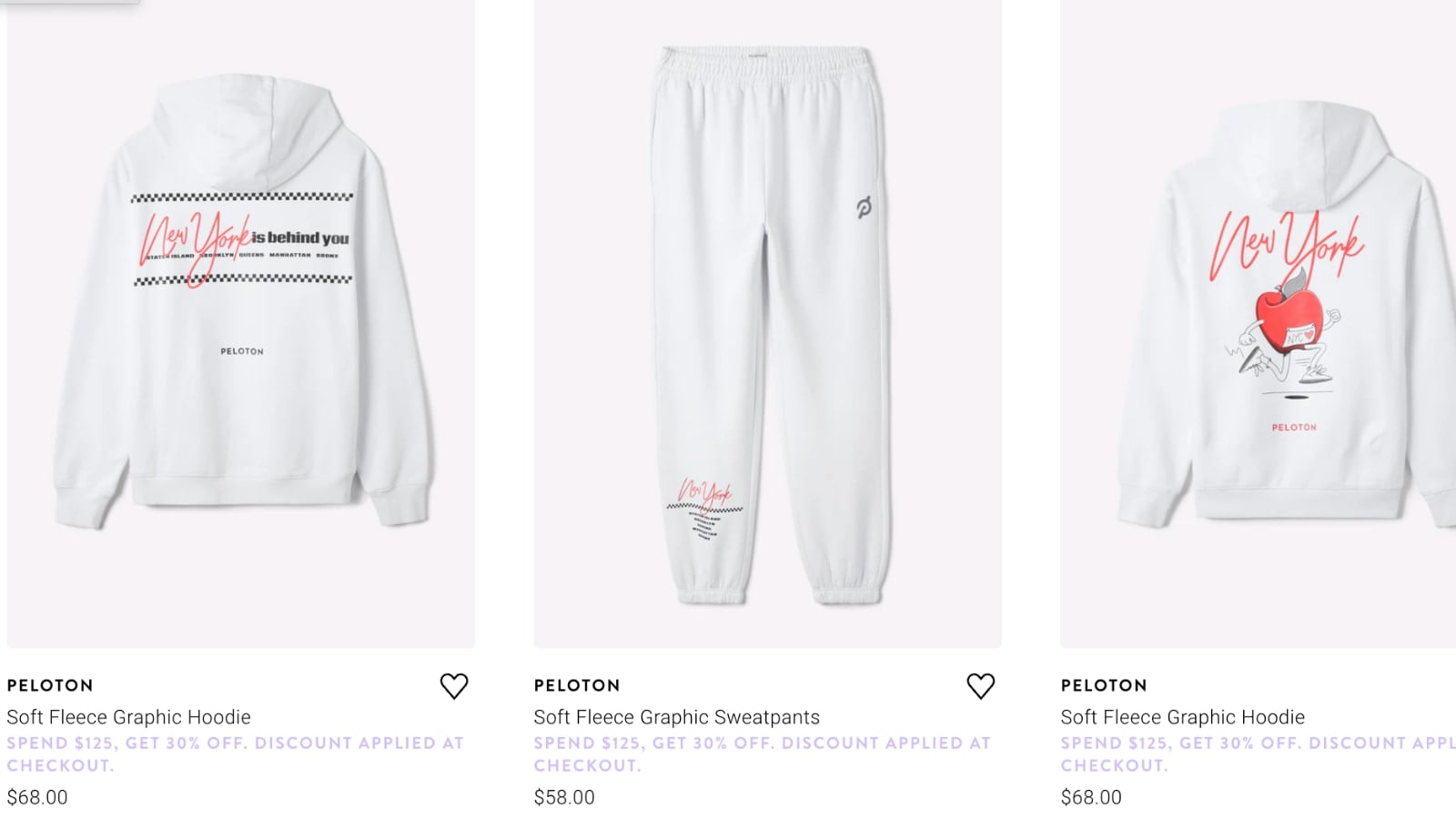 Peloton Apparel website advertising New York Lifestyle Collection.