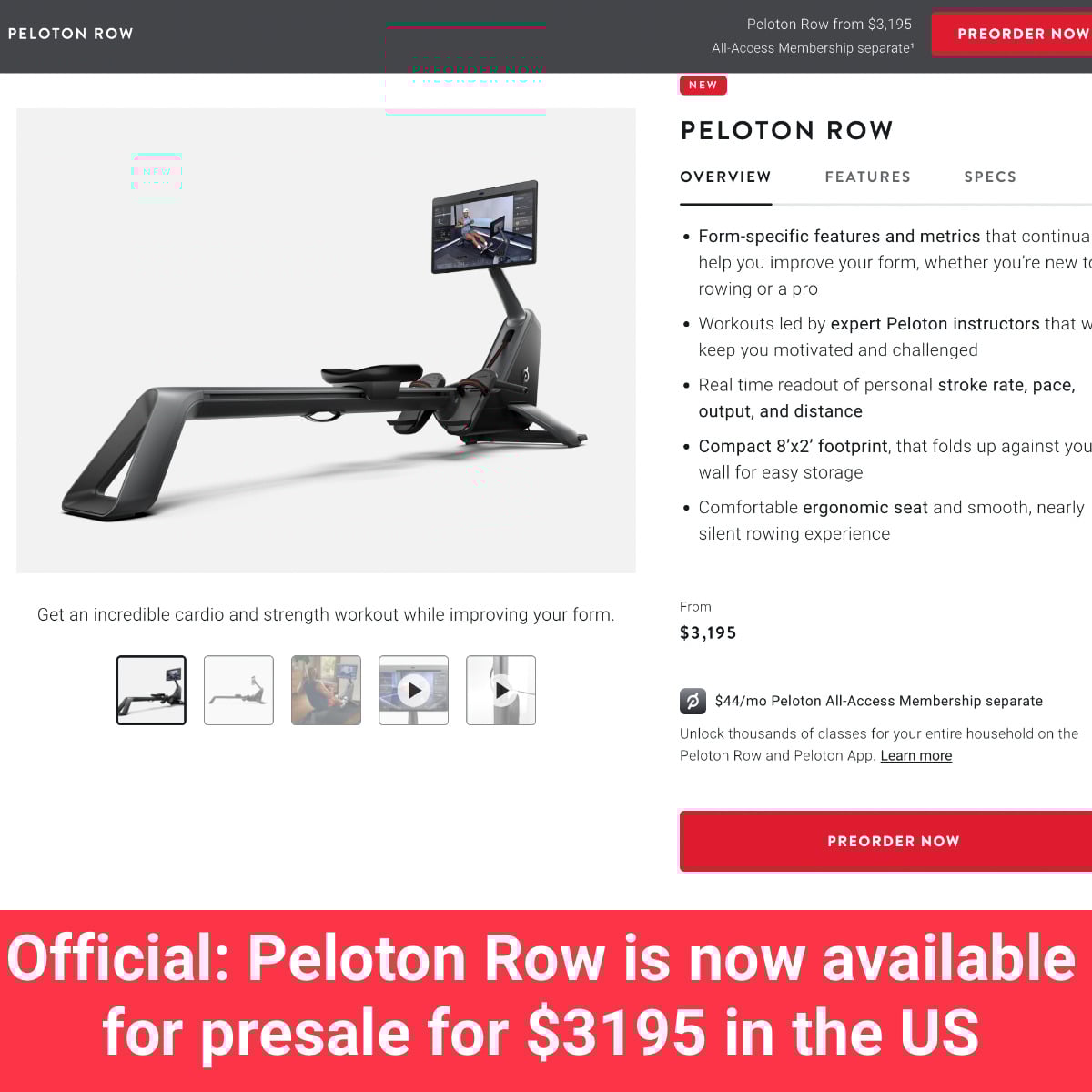 This morning, Peloton official launched their newest product: The Peloton Row. The Peloton Row can be preordered for $3195, with deliveries expected to start around December. This is the price point we reported last week.