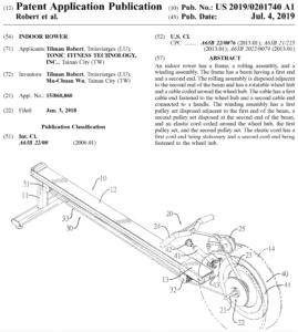 A patent related to an indoor rower was filed on January 3rd, 2018 and granted on July 4th, 2019. Why is this significant? Because the company who filed the application for the patent was Tonic Fitness Technology – the same company that was acquired last month by Peloton.