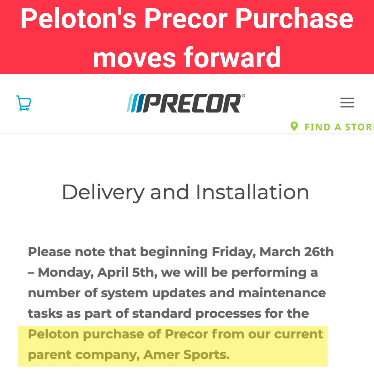 Additionally, last week Bob noted that new job postings appearing on Precor’s website no longer were including the standard phrase “is a subsidiary of Amer Sports Corporation”, which had historically shown up on all job postings.