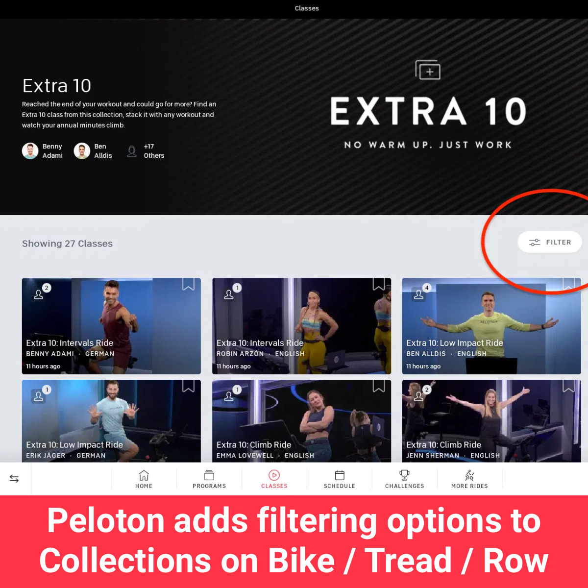 Peloton recently added a small but useful feature to Bike, Tread, and Row devices that allows members to filter through collections on their devices.