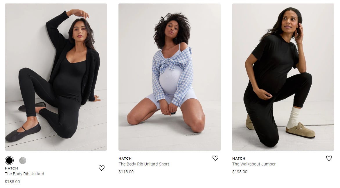 The collection is described on the Peloton Apparel webpage as “New looks for before, during, and after pregnancy.” There are currently 4 items in the Peloton x HATCH collection: The Body Rib Unitard (in 2 colors), The Body Rib Unitard Short (1 color), and The Walkabout Jumper (1 color).