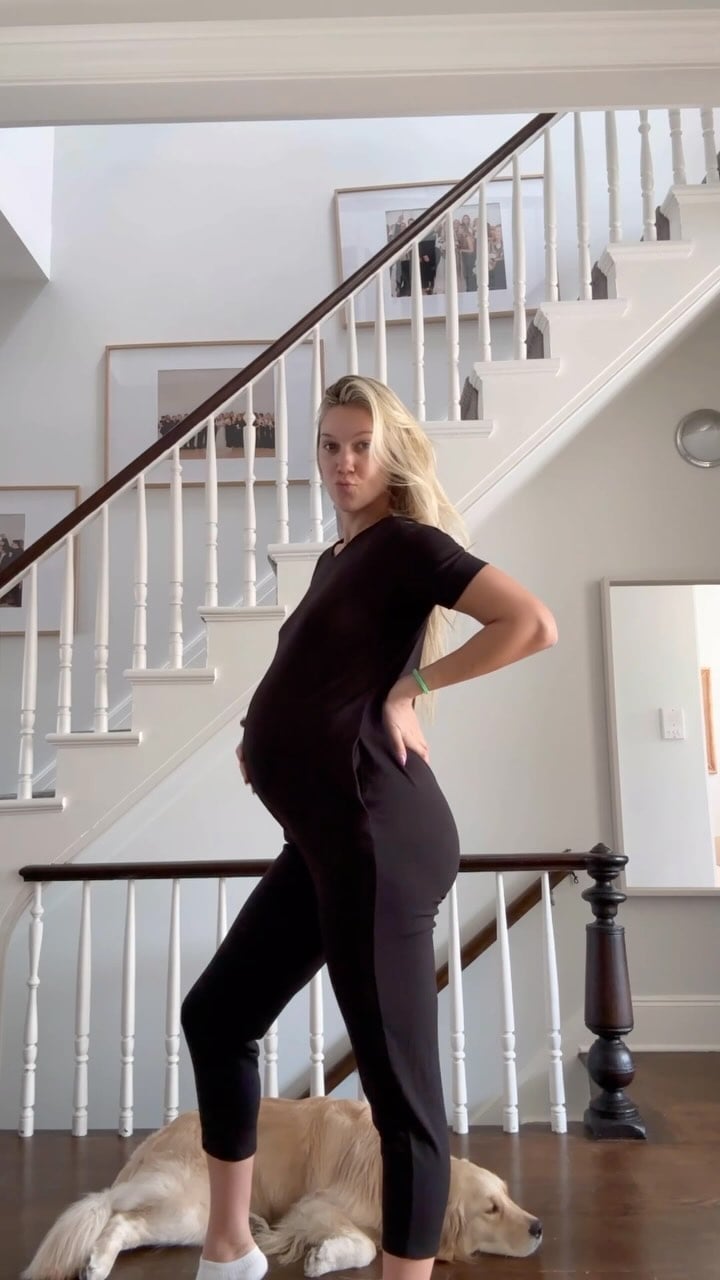 Peloton Apparel recently posted about the new Peloton x HATCH collection on Instagram showing Peloton instructor Callie Gullickson modeling the different items before she gave birth to her son in late March.
