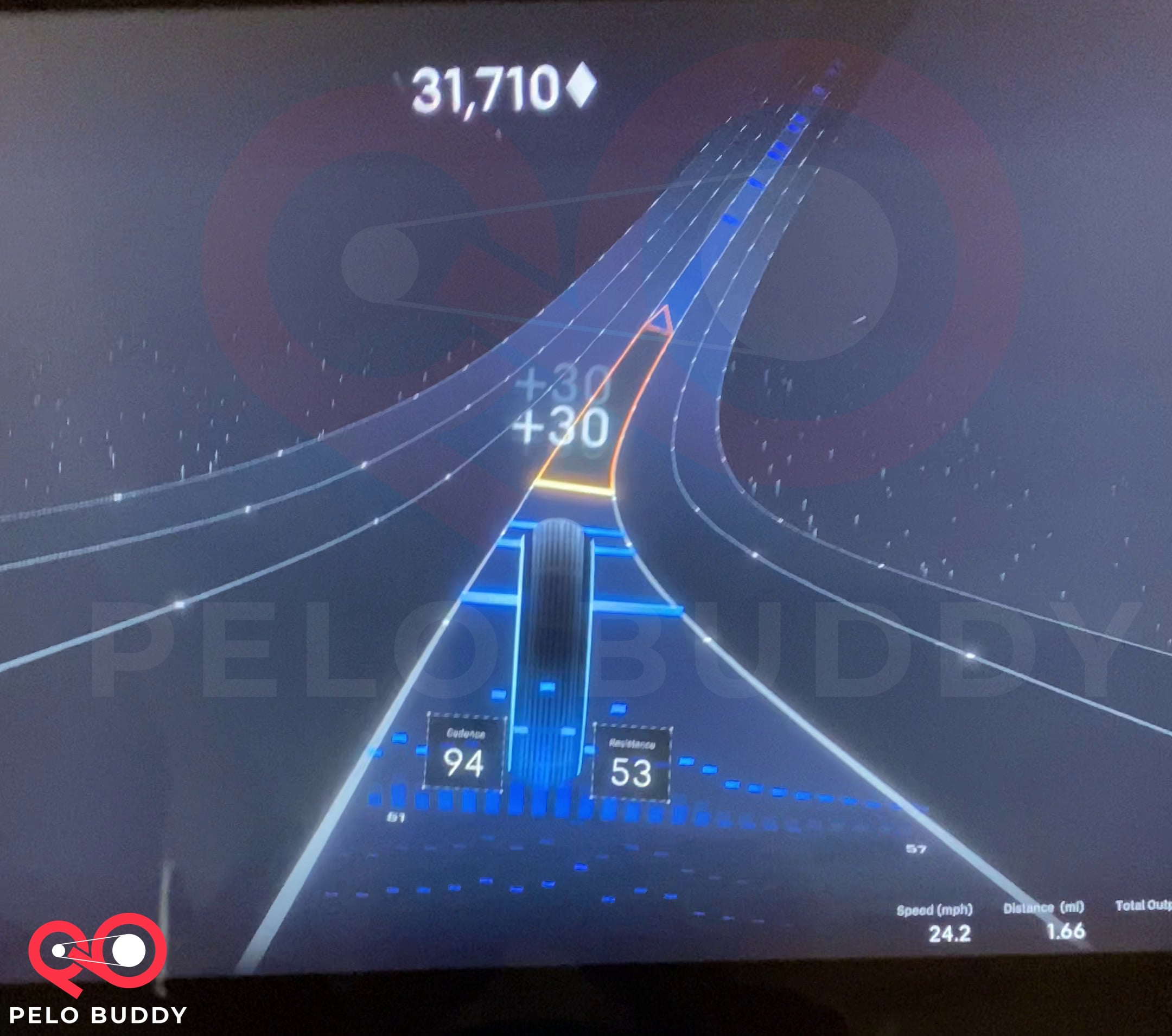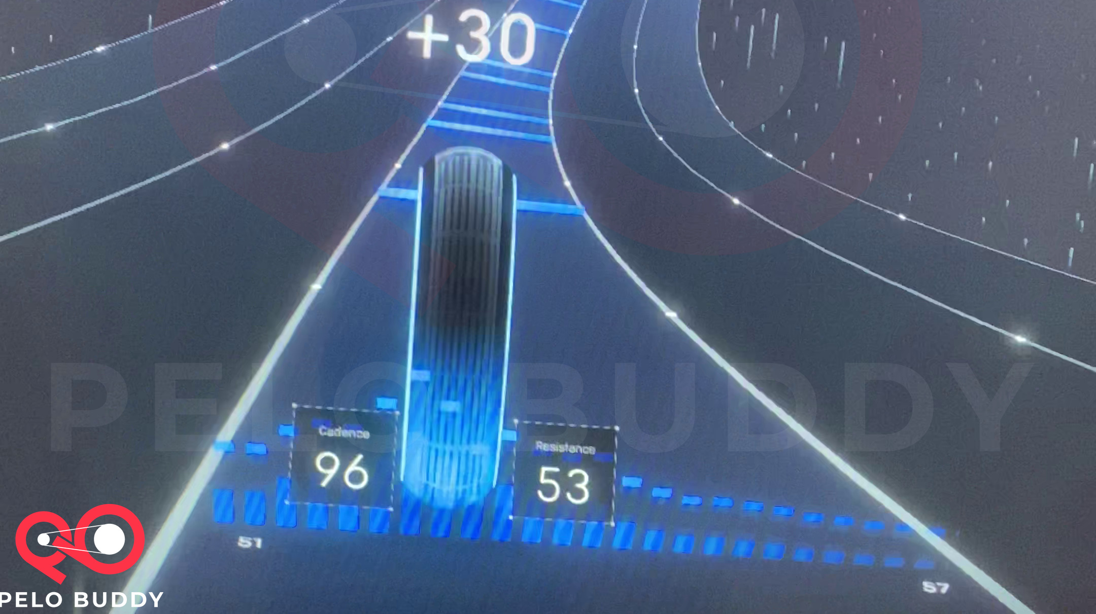 As you ride, the resistance range of your current lane is displayed by the edges of your lane, so you always have a visual indicator of the resistance to keep to stay in the lane.