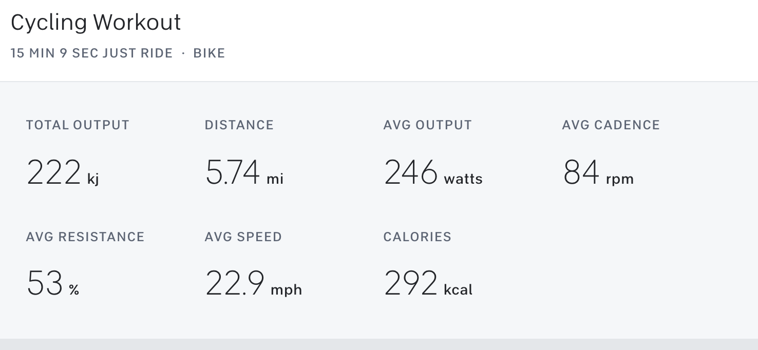 When you complete a Lanebreak race and look at your completed workout in the app – it currently shows up as a regular “Just Ride” activity, with your output, time ridden, etc. There is no indication of your score, how many stars you achieved, or anything like that. You simply see the regular stats you would for any ride.