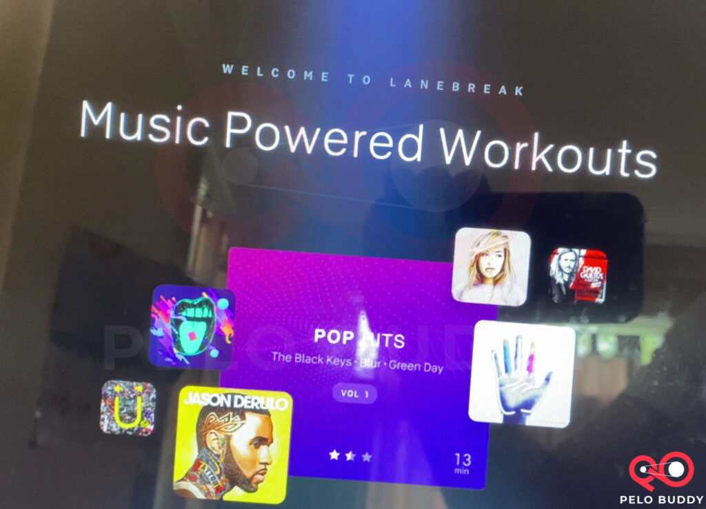 When starting a new game on Lanebreak, you have 2 choices to make: A playlist to ride to, as well as a difficulty level. Like a regular Peloton ride, the playlists are specifically curated – it is not a playlist that shuffles daily like the non-guided scenic rides.