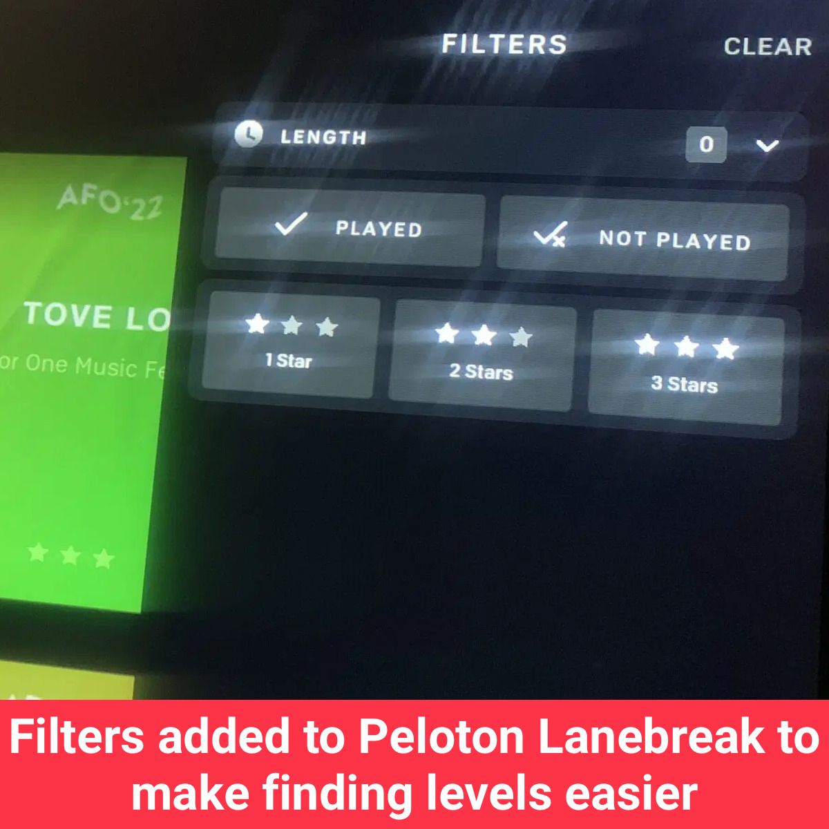 Peloton Lanebreak gets a filter to make finding levels easier