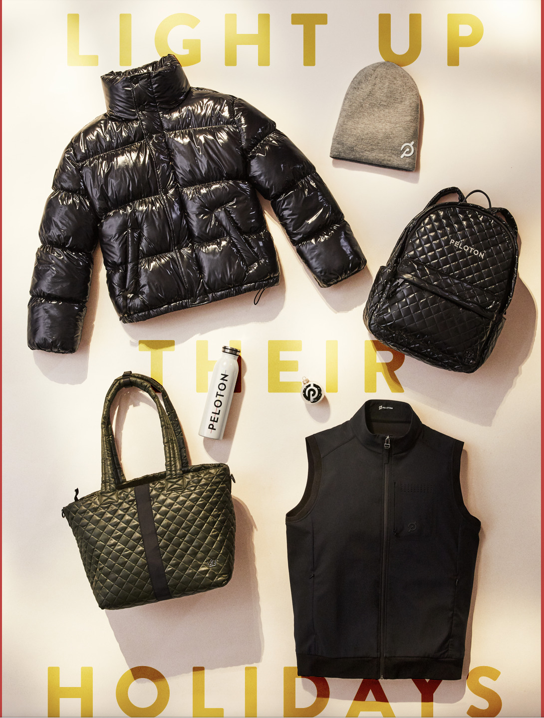 Peloton has launched a holiday themed collection in the Peloton apparel store. Depending on the market, it’s being called the “Light up Their Holidays” or “Light Up Their Festive Season” collection. This new drop consists mostly of accessory items, but has a few clothing pieces as well.