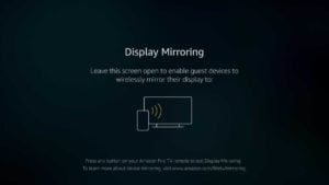 This means that after you update your Fire TV 4K stick to the latest version, you can enable screencasting on the Fire TV stick and mirror your Peloton to the stick! To enable the feature on the Fire TV 4K stick (after updating it to the latest version of the software), simply press & hold the home button on your remote for a few seconds. A popup will appear, with one of them saying “Mirroring”. Use the remote to select it, and the TV will go into a waiting mode, ready to display content from the Peloton. You can also enable the mirroring setting through the Fire TV stick settings menu, however, that takes many more clicks. The TV should look similar to the below screenshot once it is set up in mirroring mode: