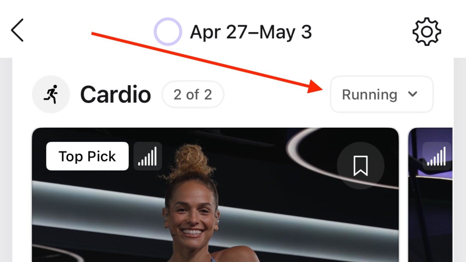 When the new feature is available, you’ll see a small banner at the top of your Personalized Plan that reads: “Your plan, your cardio. Now you can switch between cardio types included in your plan.”