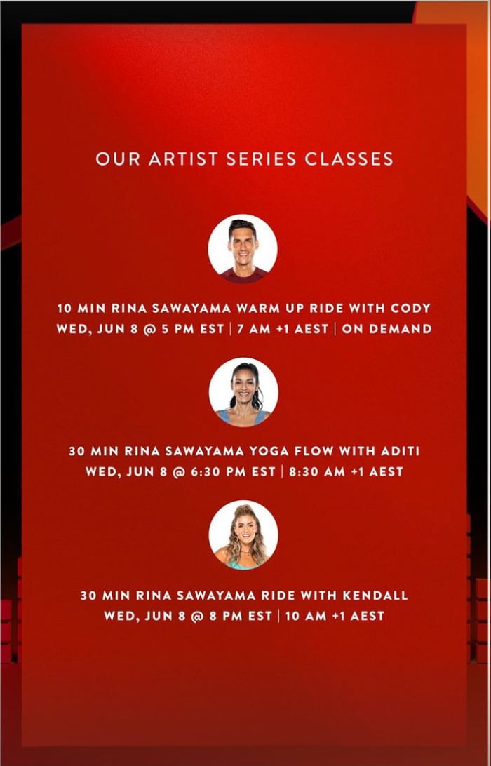 Peloton's Rina Sawayama artist series schedule. Image credit Peloton social media.