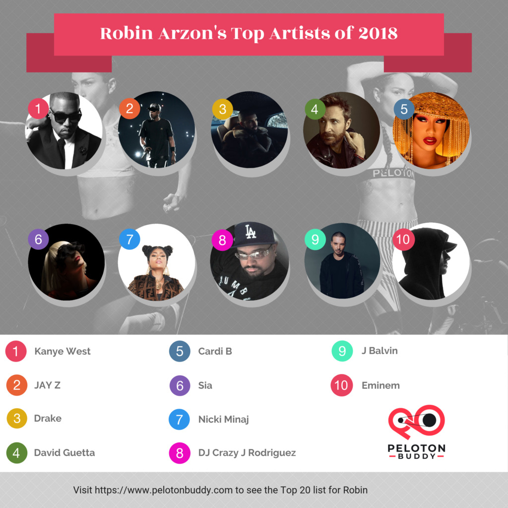 Robin’s most frequently played artists during her workouts in 2018 were: