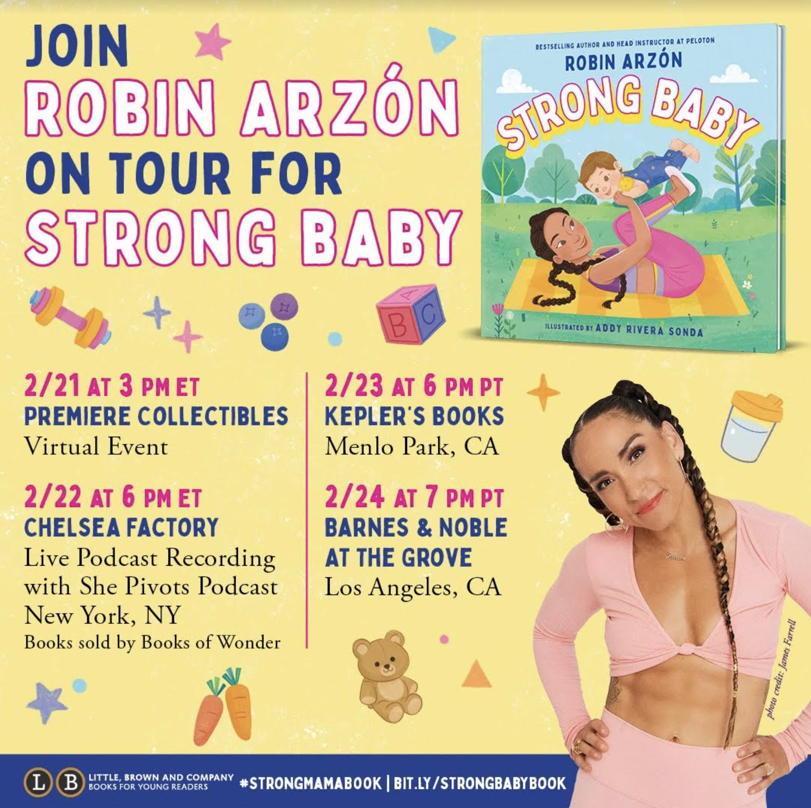 Peloton instructor Robin Arzón has announced a book tour in advance of the release of her second children’s book, Strong Baby. She shared the news via Instagram: