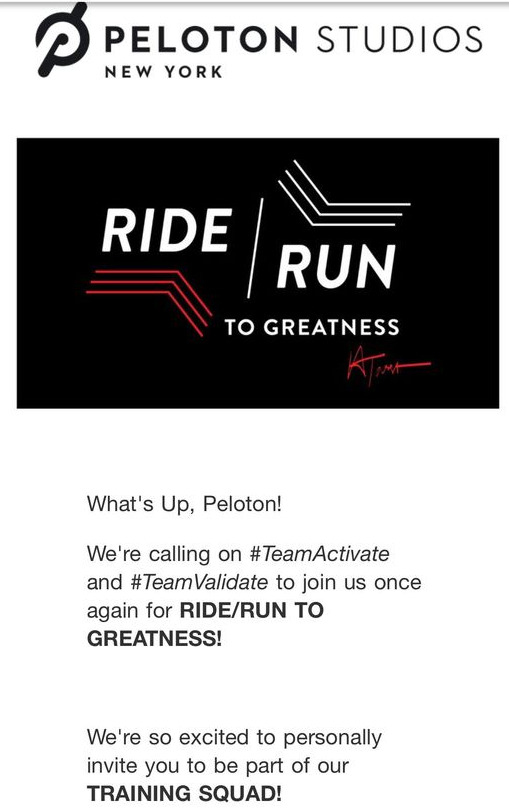 If you’re participating in the Ride/Run to Greatness, make sure to catch the the first ride on Wednesday, March 22 at 7:00pm ET and add #TeamActivate or #TeamValidate to your profile!