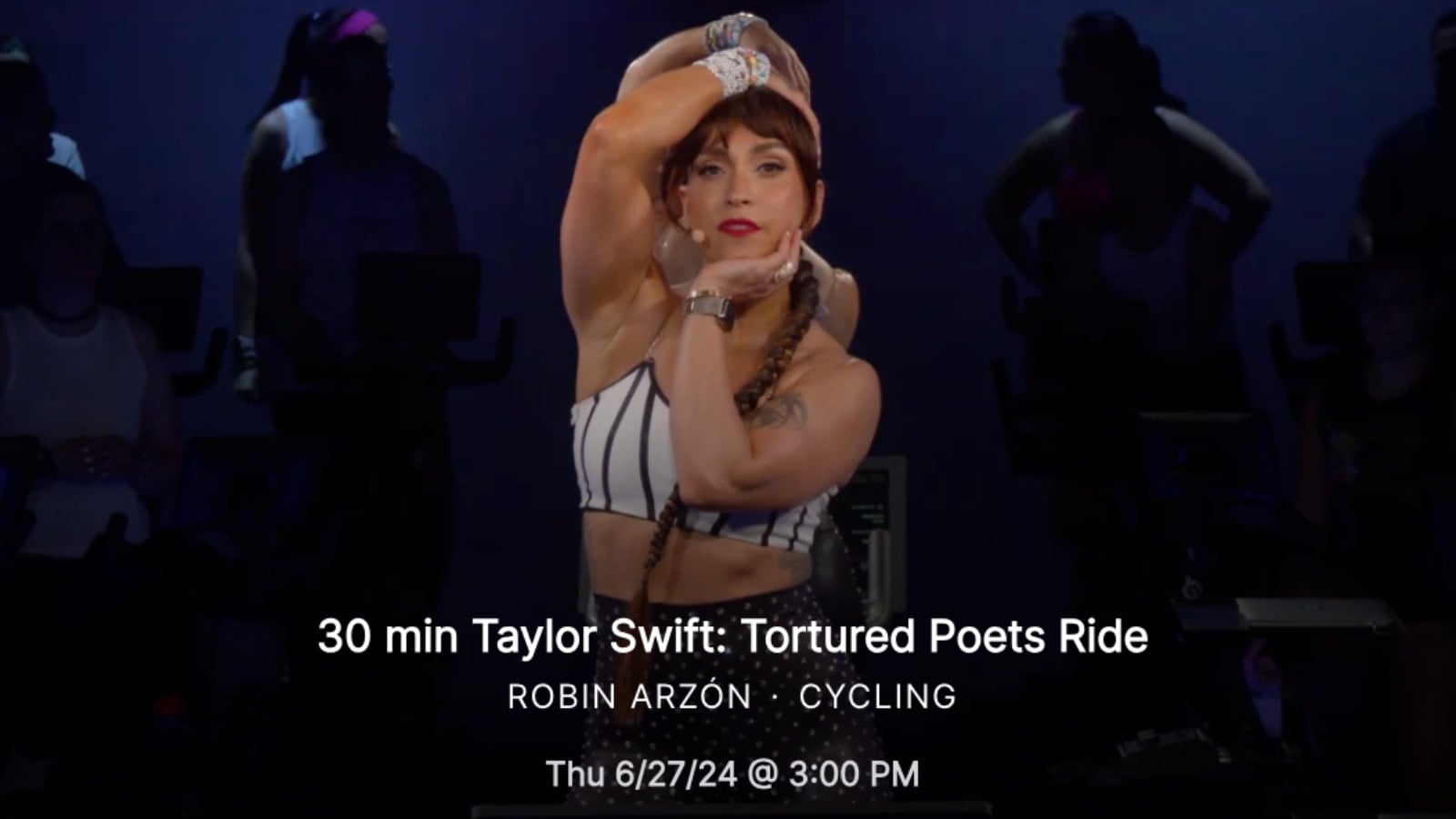 There was no official word on what the class was based on the invite – although many of the people who had gotten invited were Peloton Swifties. We speculated at the time this might be a Tortured Poets Department (Taylor Swift TTPD) class series.