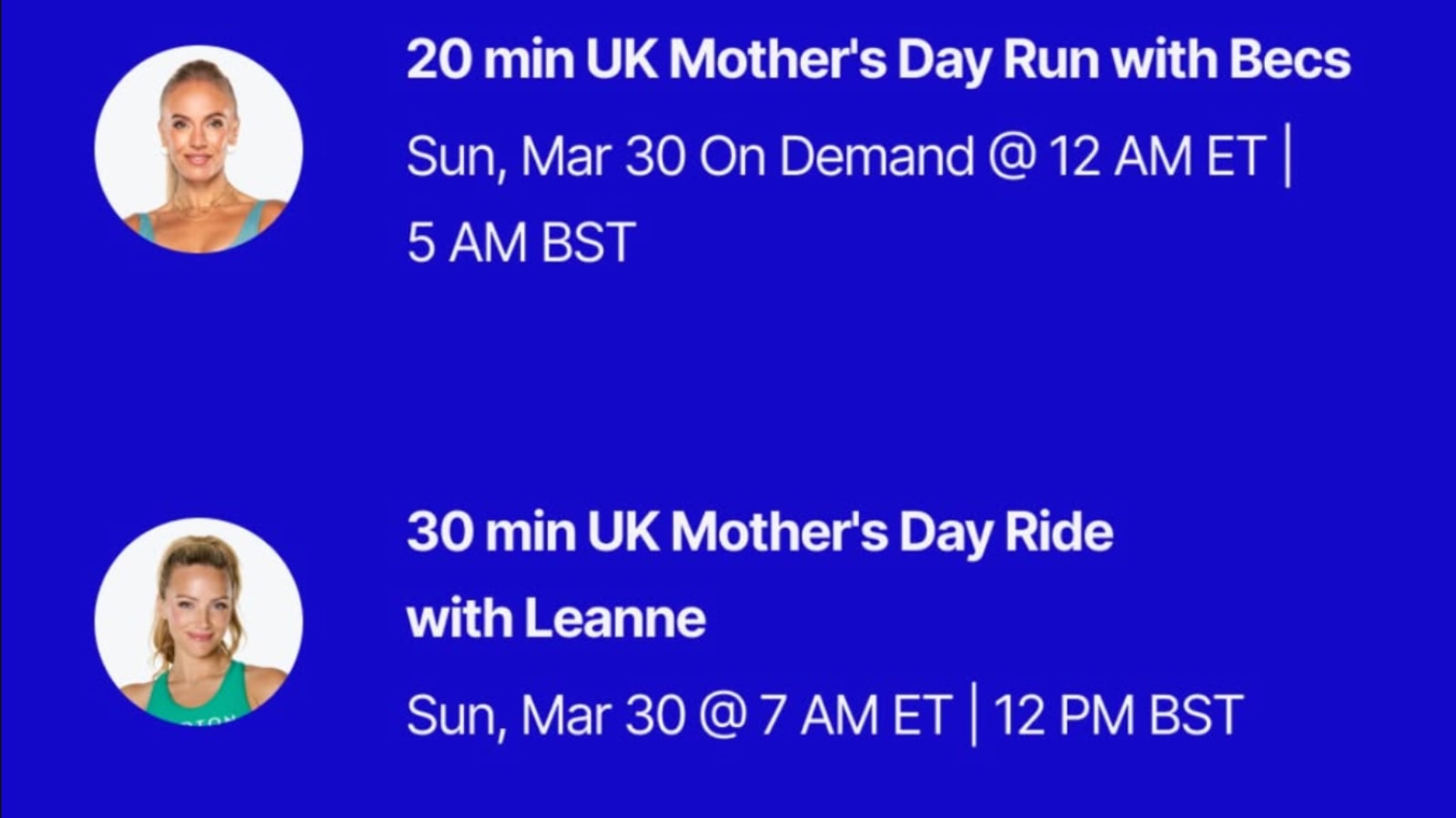 Peloton’s UK Mother’s Day classes for 2025 are: