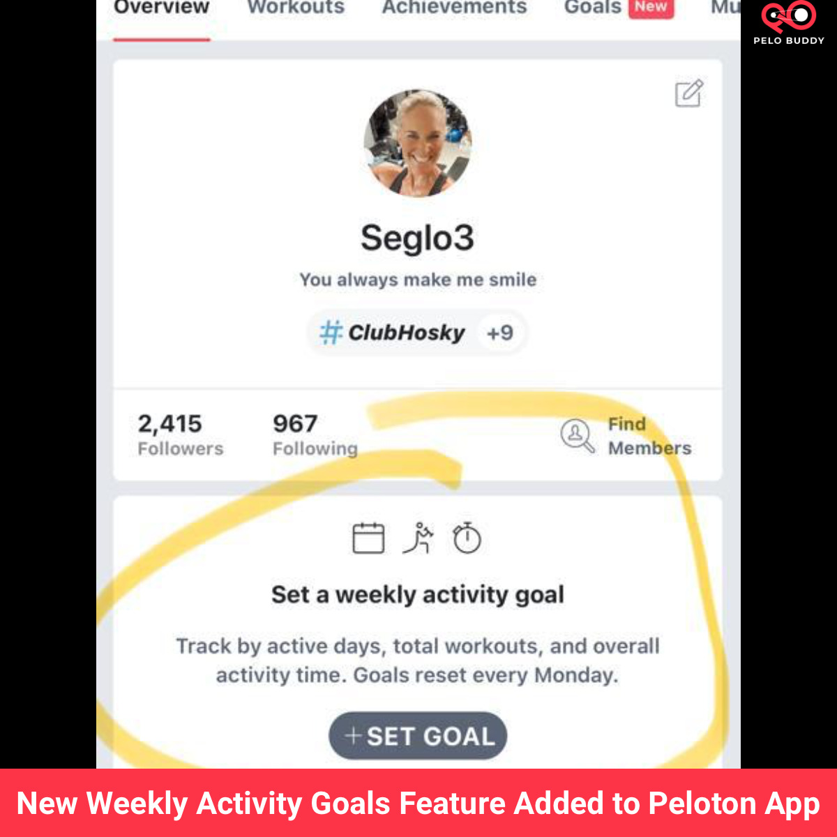 Peloton has added a new feature to the Peloton app, simply titled “Goals”. This feature allows you to create a weekly activity goal for yourself on the Peloton platform, and track your progress towards it.