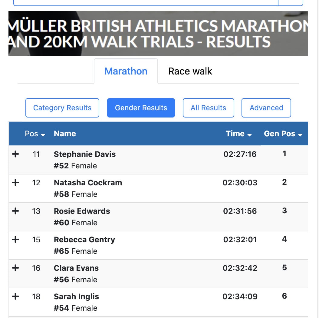 Becs Gentry’s Results in the Olympic Marathon Trials for Team GB