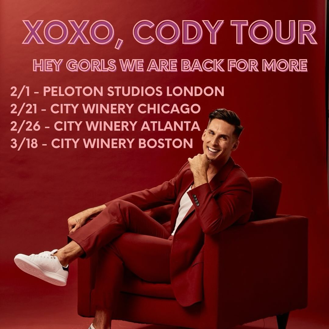 Ok girls, we’re going back on tour. I’m taking my ❌⭕️❌⭕️, Cody book tour on a second leg. Available now with Link in my bio to purchase tickets to the shows for Atlanta, Chicago, and Boston. Tickets to my London Show at Peloton Studios London will be on sale 1/16/24 thru Peloton. Look forward to seeing you there, chatting about the book, spilling the tea, and having some fun. Purchase tickets with link in my bio