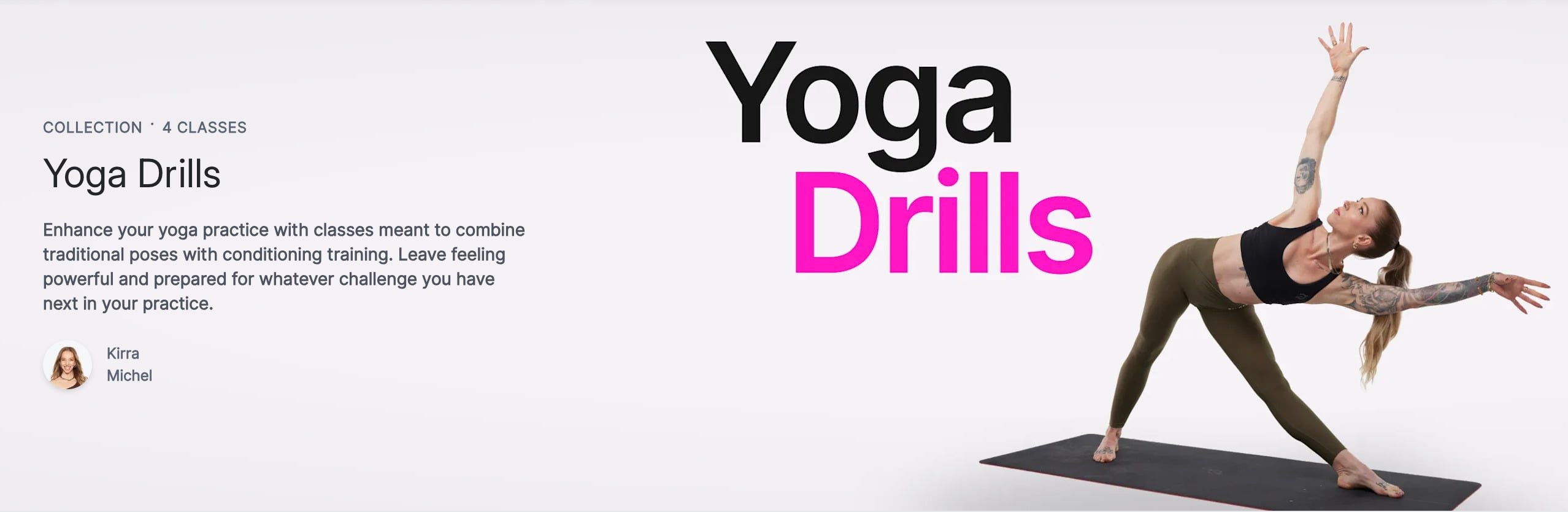 As more classes have been added, a new collection has been made to house them. The official Yoga Drills Collection description reads: